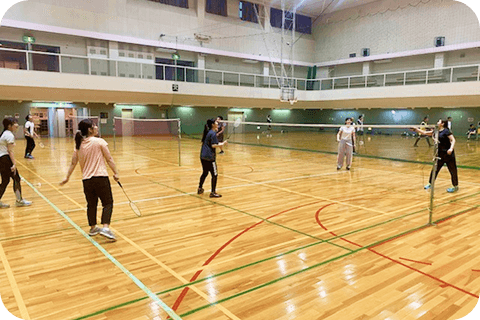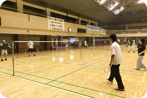 バドミントン部は、老若男女問わず誰でも気軽に楽しめるスポーツとして、本社や関東支社、近畿支社を中心に幅広く活動しています。スポーツを通じて、体を動かすことの楽しさや気持ち良さを味わいながら、社員の皆さんの健康増進を図るきっかけ作りを目的としています。