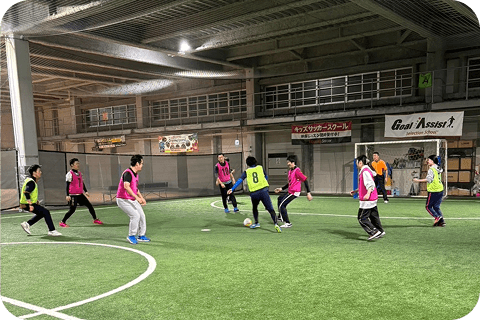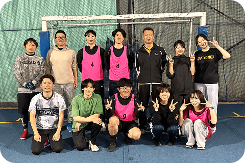 関東チームは、レンタルコートでの紅白戦を通じて、部署や年齢、性別の枠を超えた活発な交流とコミュニケーションを育み、運動不足解消と楽しい時間の提供を目指しています。