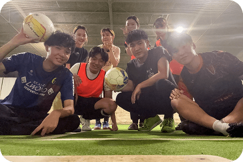 近畿チームは、未経験者を中心に外部大会に出場し、全員でフットサルを楽しむことを重視しています。